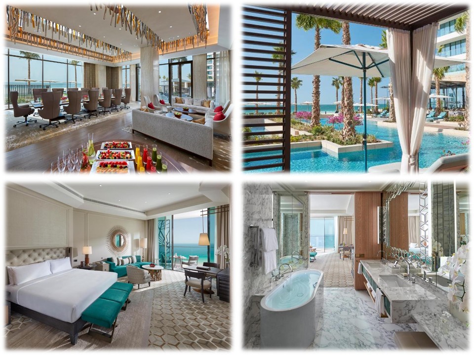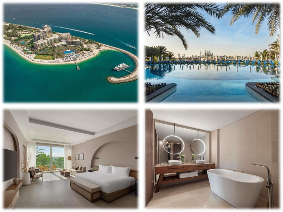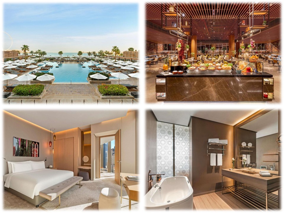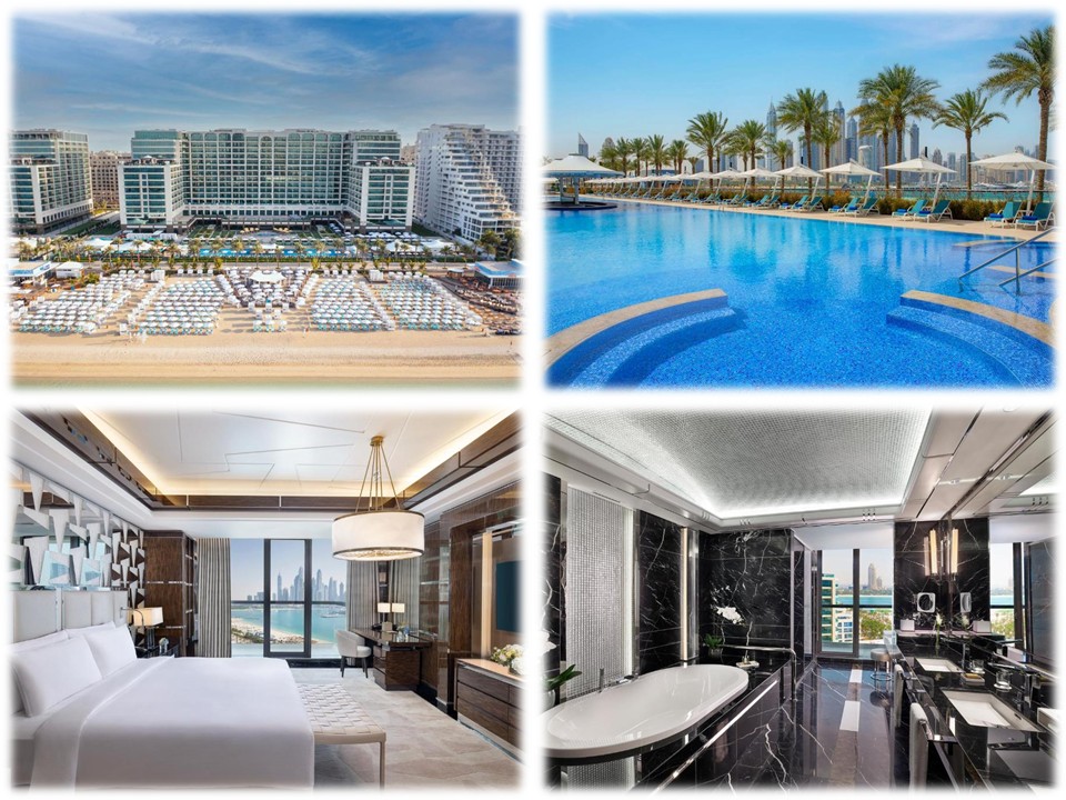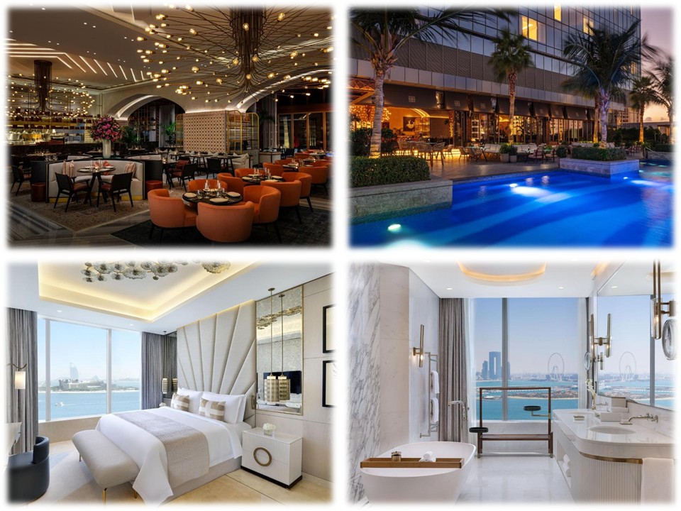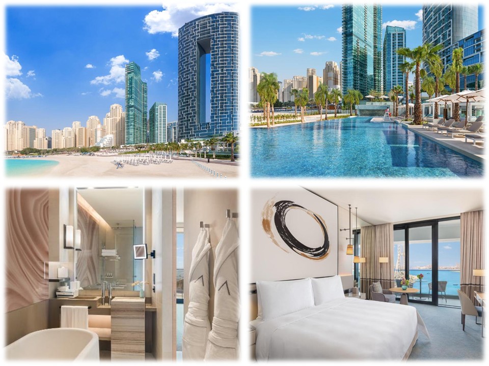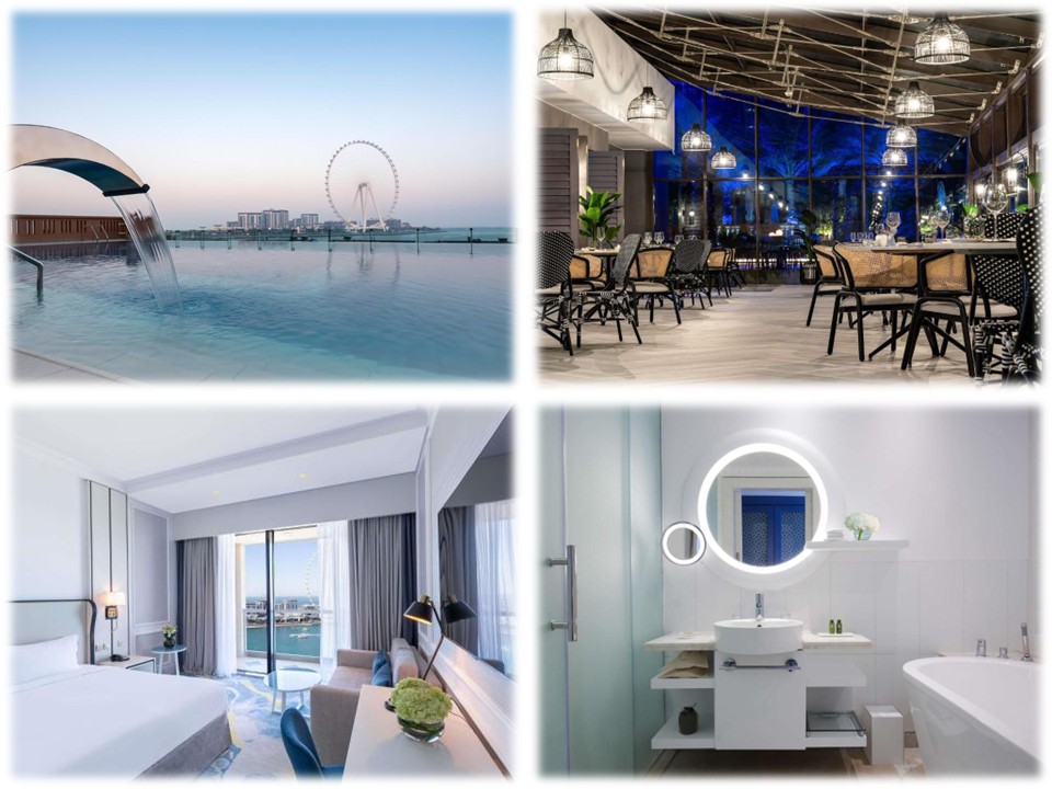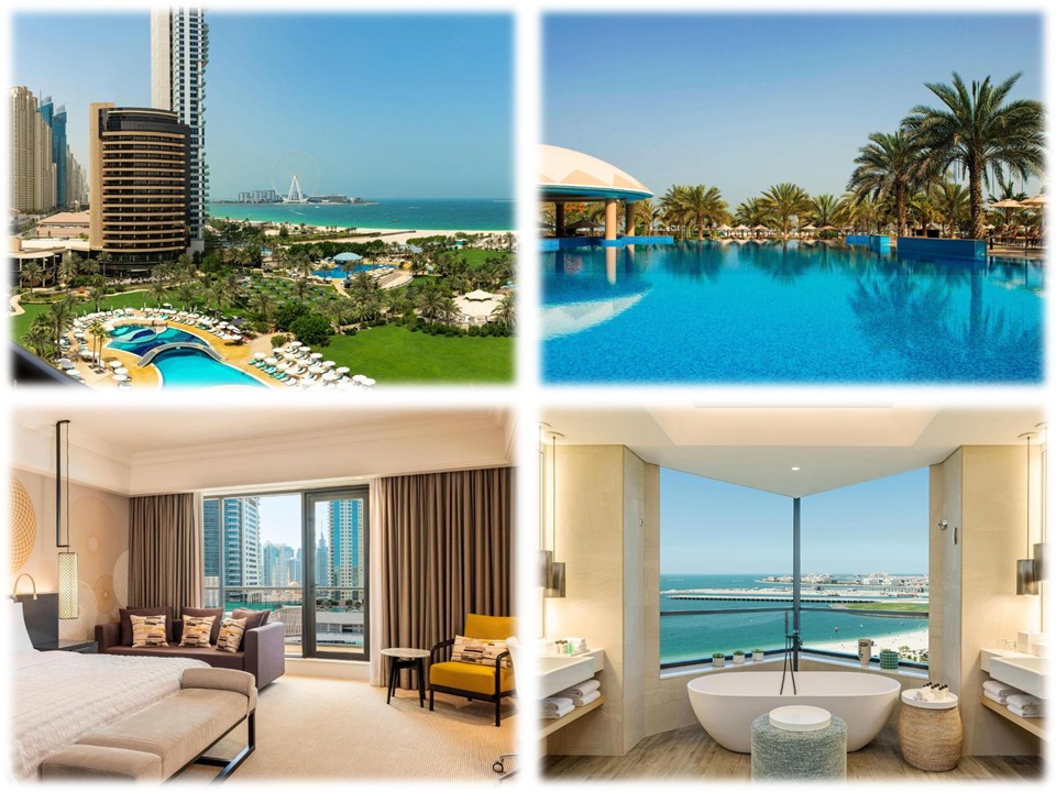 Hotel 5 estrelas em JBR, abrindo diretamente para o calçadão The Walk e para o complexo The Beach, com acesso fácil à praia, restaurantes e lojas. Todos os quartos e suítes oferecem vistas panorâmicas que vão do Golfo Árabe à Bluewaters Island (Ain Dubai) e à Palm Jumeirah. Já nos hospedamos lá e tivemos uma ótima experiência: serviço excelente, estrutura completa e uma das melhores localizações da região.