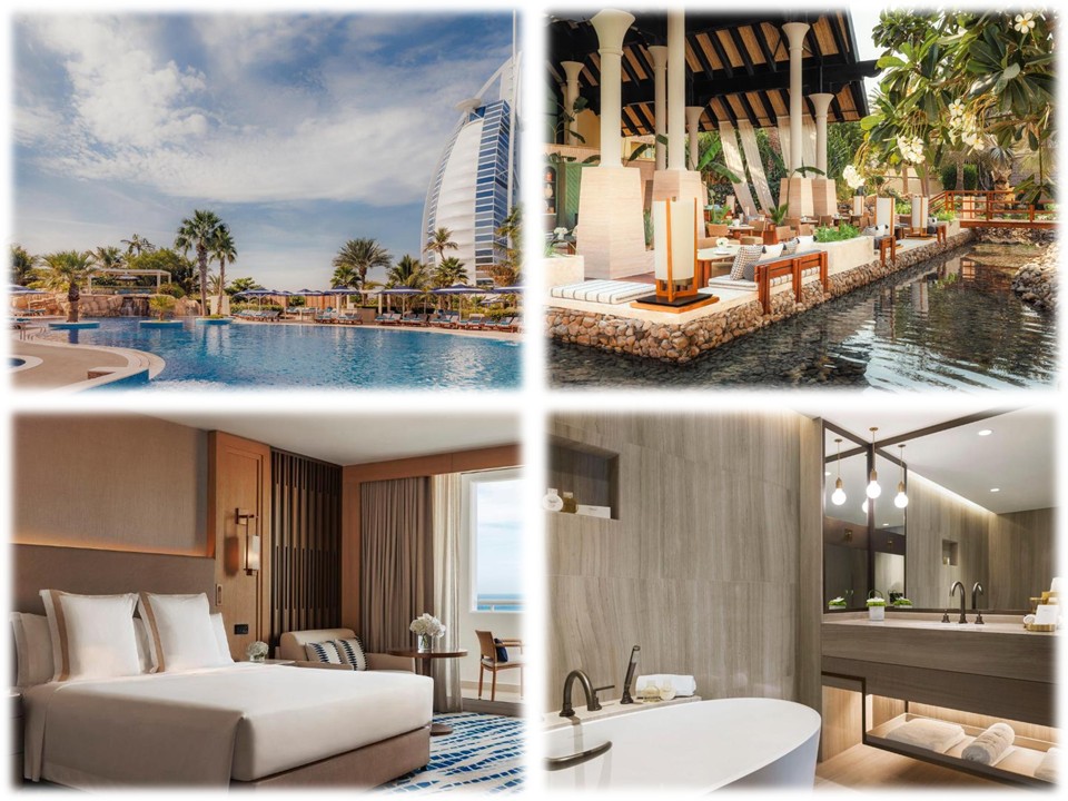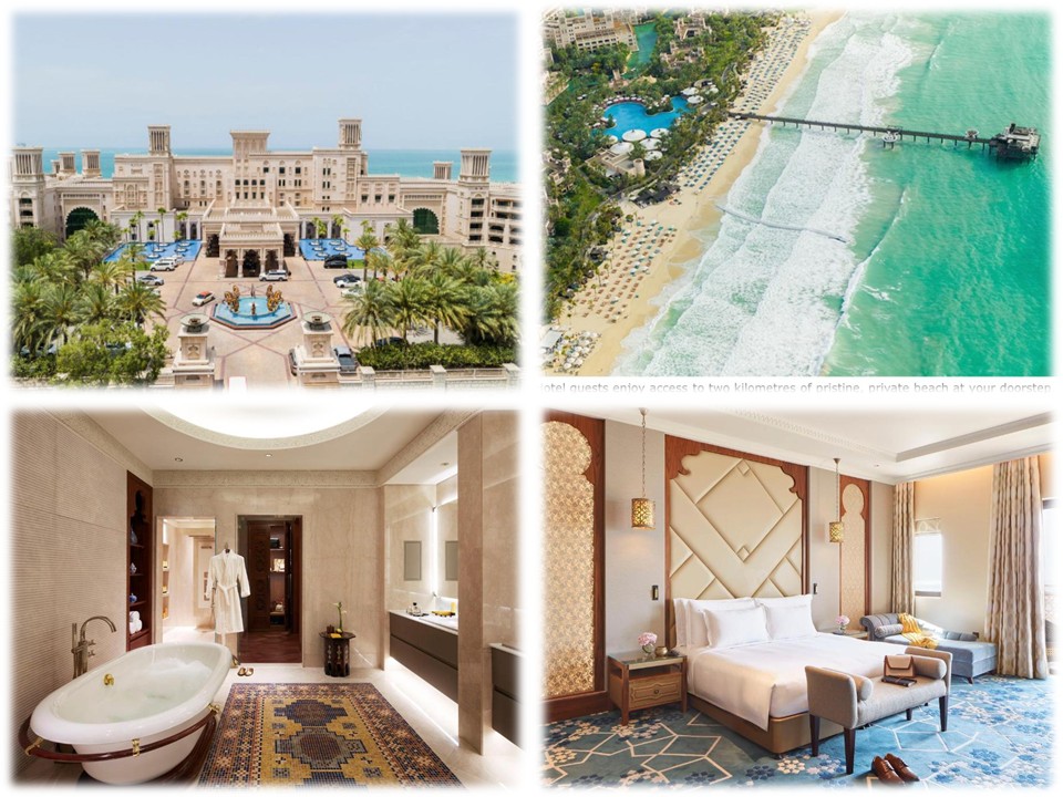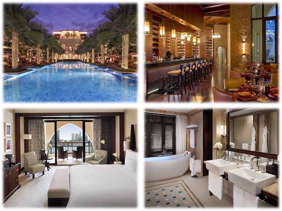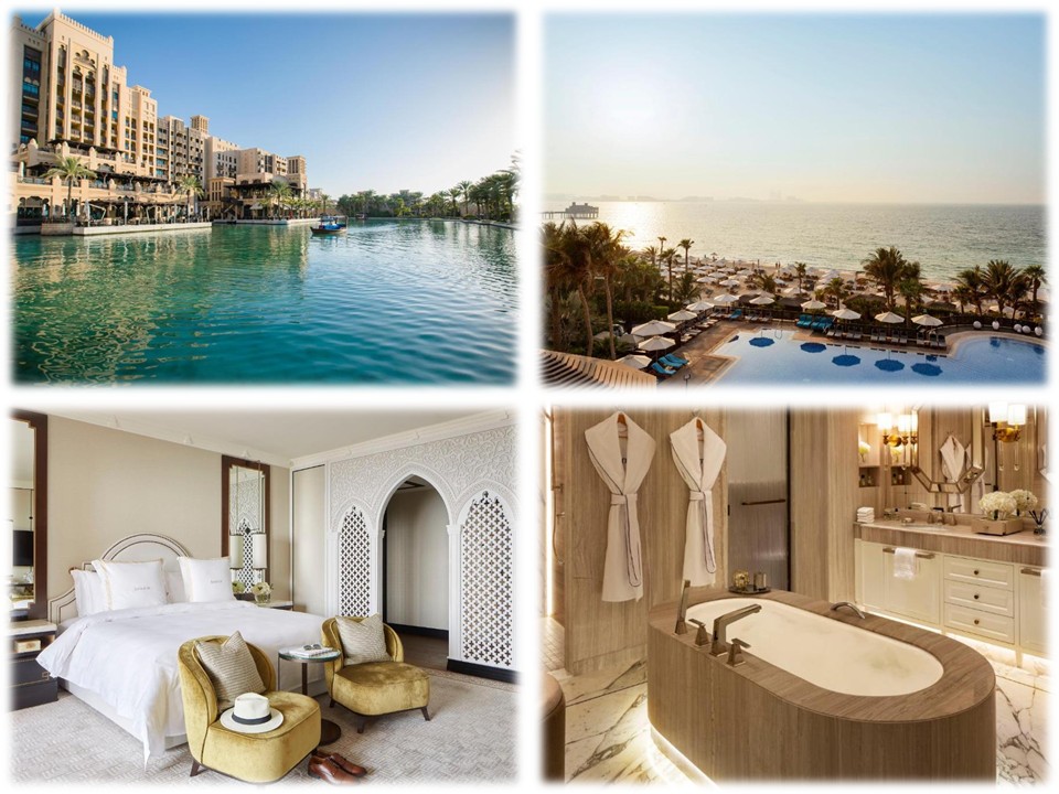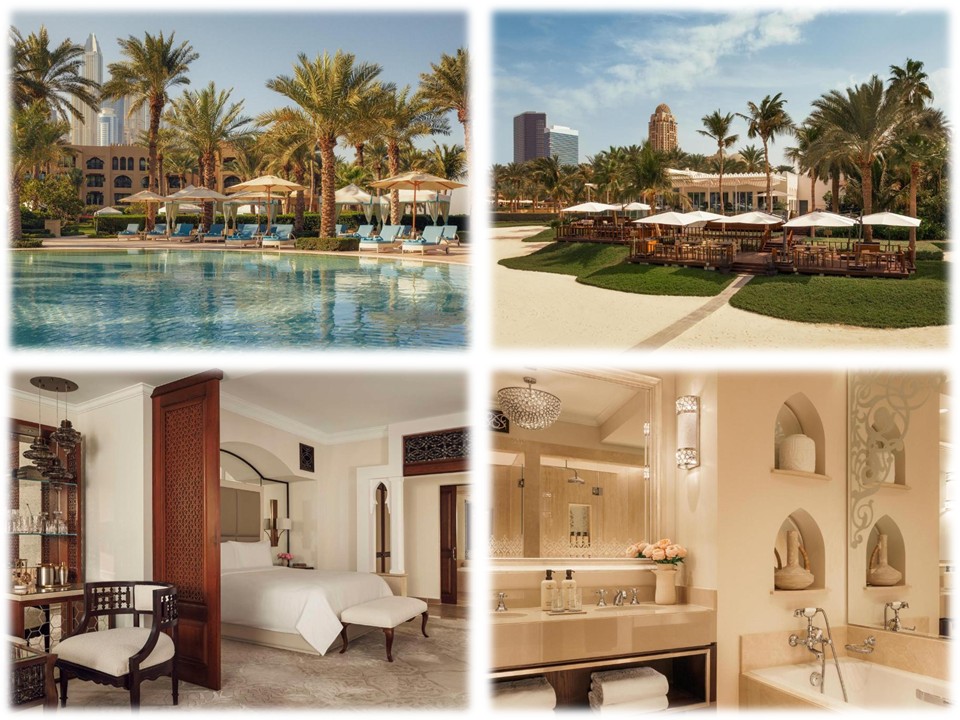 Diferente das torres altas de JBR, o Ritz-Carlton Dubai é um resort de poucos andares, com jardins grandes e acesso direto à praia, bem na área mais movimentada do calçadão. Os quartos são amplos, todos com varanda, voltados para o mar, piscinas em estilo lagoa e vários restaurantes e bares dentro do próprio hotel, num clima de refúgio mais clássico e elegante.