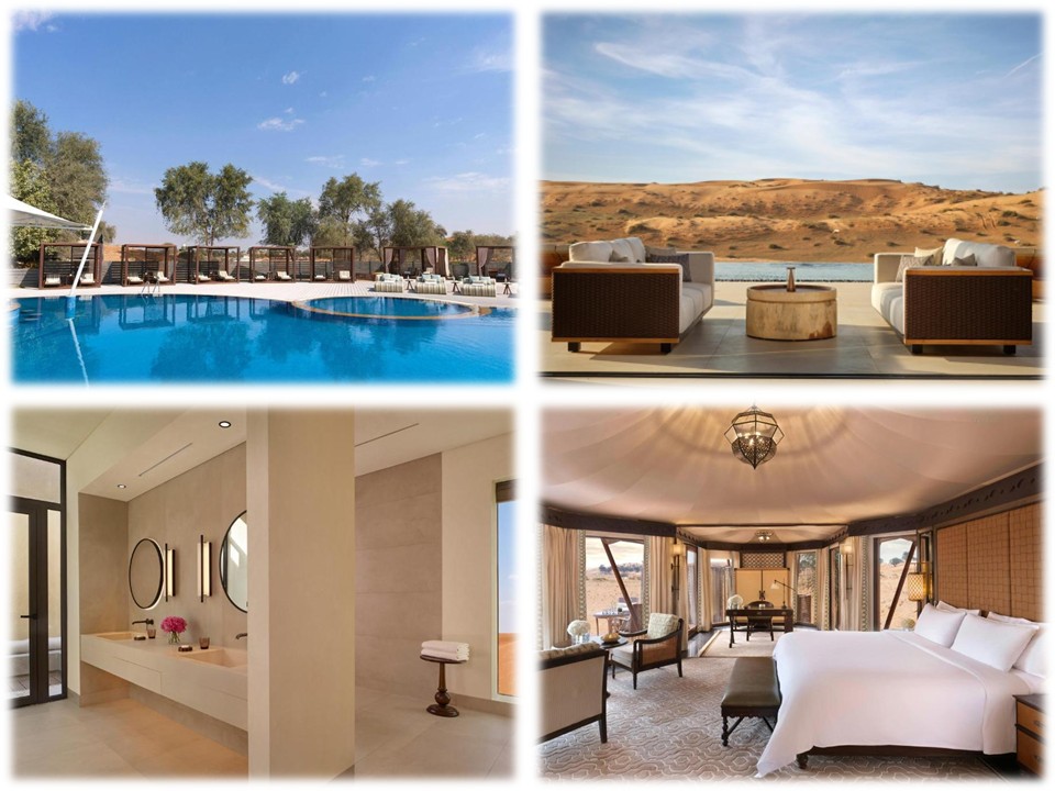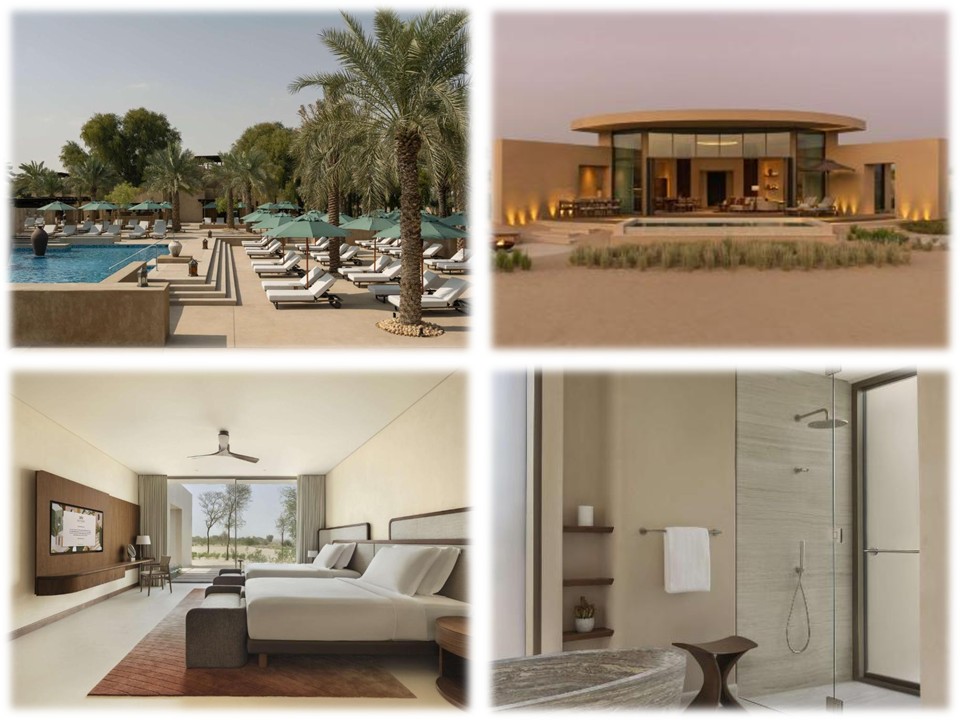 Este resort está localizado no emirado de Ras Al Khaimah, cerca de 1h30 de carro a partir de Dubai. Fica dentro de uma reserva natural privativa com mais de 500 hectares de deserto protegido. A experiência aqui é totalmente voltada para privacidade e contato com a natureza. As vilas são isoladas, todas com piscina privativa e vista para as dunas, proporcionando um clima mais exclusivo e silencioso do que os resorts do deserto de Dubai. Ideal para quem deseja tranquilidade absoluta, lua de mel ou uma experiência mais intimista.