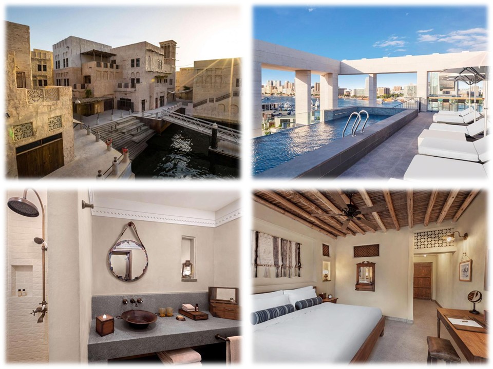 Às margens do Dubai Creek, o Al Seef Heritage Hotel recria um vilarejo árabe com quartos em estilo tradicional e toques contemporâneos. A localização é excelente para explorar o Al Seef, os souks e o bairro histórico Al Fahidi.
