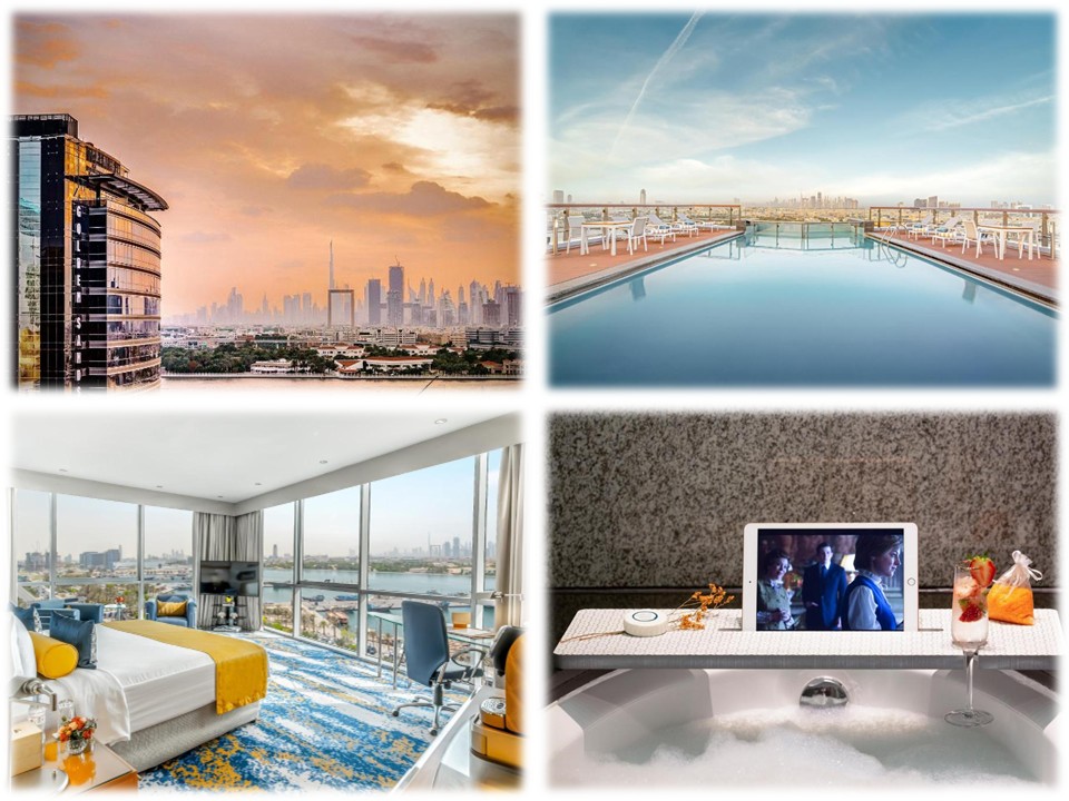 Localizado em Business Bay, ao lado de Downtown. O hotel se destaca pelo design artístico e criativo, inspirado na cena cultural de Dubai. Conta com piscina, restaurante e ambientes cheios de personalidade, que deixam a estadia mais leve e descontraída. Nós já nos hospedamos lá e gostamos muito tanto do serviço quanto do quarto, uma opção estilosa e com excelente custo-benefício na área central.