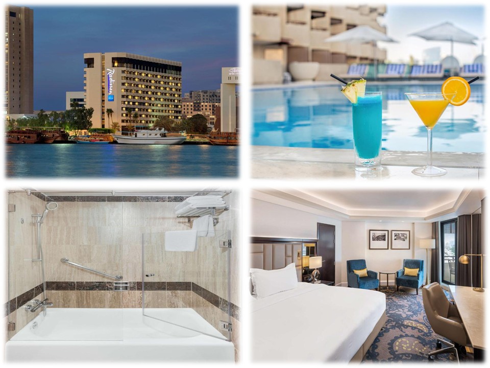 Clássico da região, o Radisson Blu Deira Creek tem vista direta para o Creek e fica perto dos souks tradicionais. Une tradição e conforto, com múltiplos restaurantes, academia e suítes com varanda.