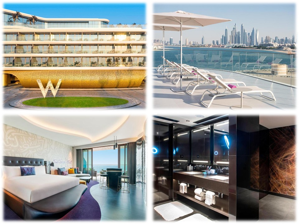 Situado em Mina Seyahi, ao lado da Dubai Marina, o W Dubai é um hotel moderno, de perfil lifestyle, voltado para o público adulto. Destaca-se pelo rooftop bar, piscina com vista e restaurantes badalados. Apesar de não estar exatamente dentro da Marina, fica a poucos minutos de JBR e do Marina Walk, sendo uma ótima opção para quem busca clima sofisticado e animado à beira-mar.