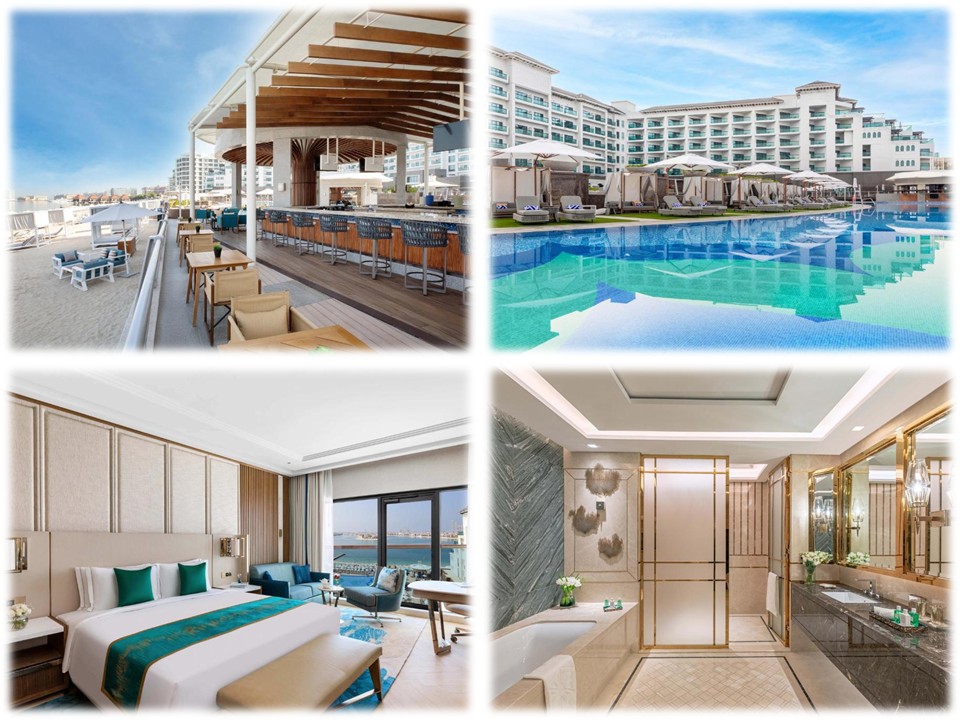 O Waldorf Astoria Dubai Palm Jumeirah tem um estilo sereno e elegante, ideal para dias mais tranquilos à beira-mar. Praia agradável, spa, cabanas e serviço atencioso favorecem momentos de descanso em um ambiente sofisticado e reservado. Indicado para quem prefere sofisticação discreta e clima mais calmo do que os hotéis mais animados da Palm.
