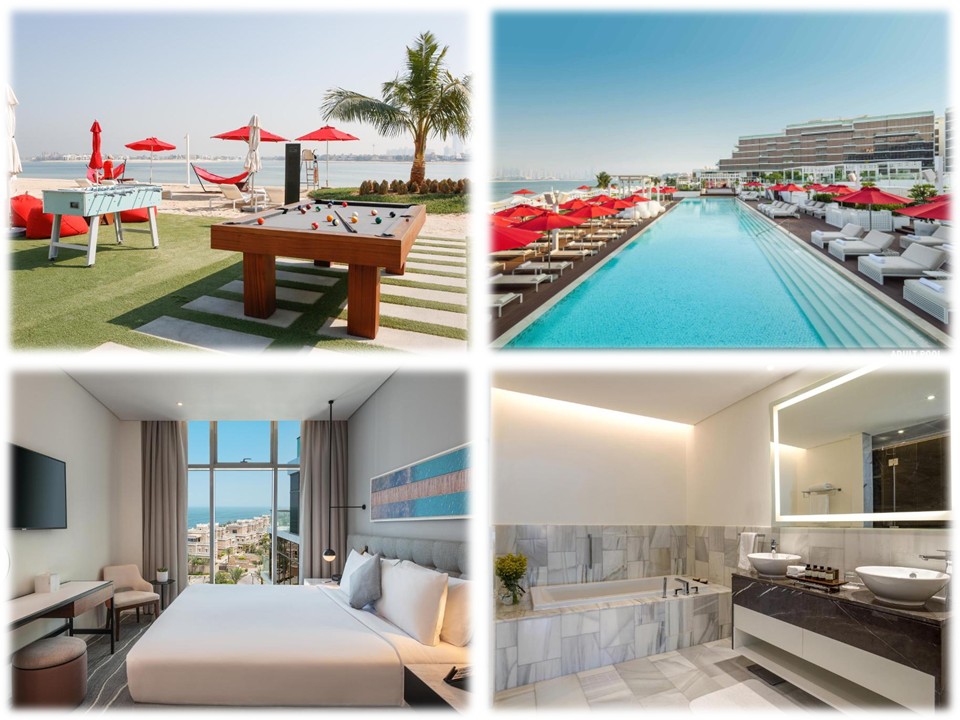 Aqui a proposta é “lifestyle hotel”: pé na areia em JBR, com beach club, bares e restaurantes e quartos com acesso fácil à praia. O hotel equilibra clima de festa com uma boa área de piscina e estrutura de resort, e ainda está a poucos minutos de shoppings como Dubai Marina Mall e Mall of the Emirates
