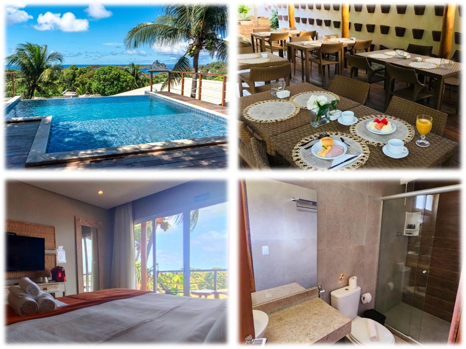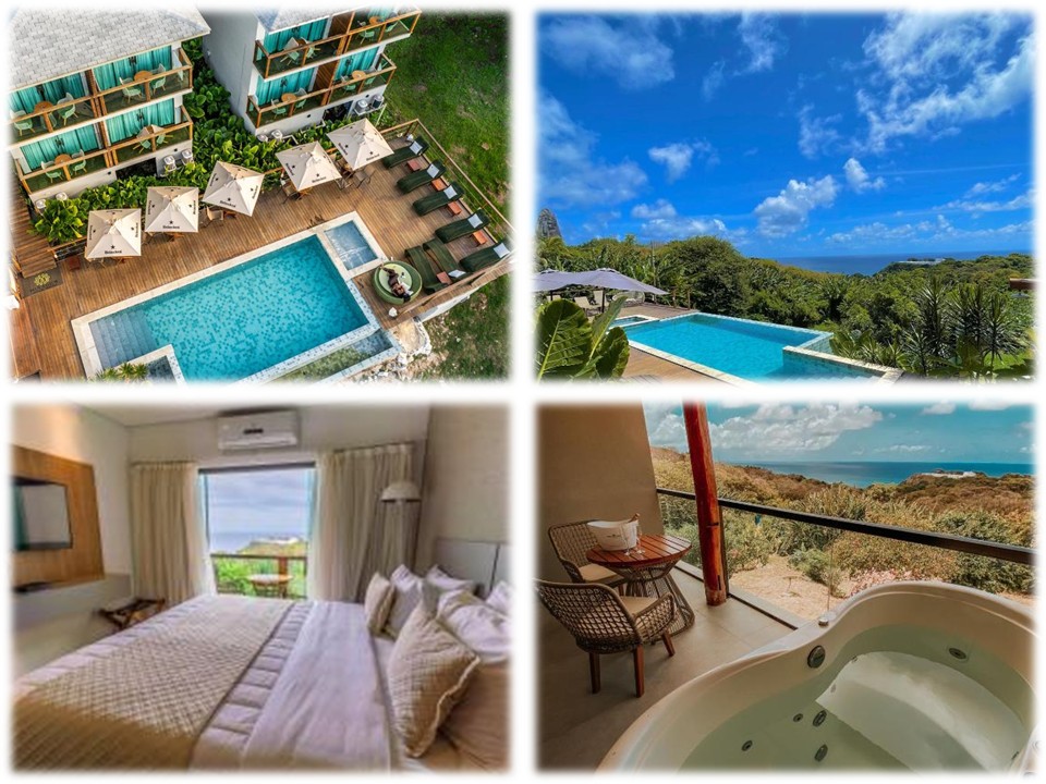 Localizada em uma área elevada da ilha, a Colina Pousada SPA se destaca pela vista panorâmica e pela proposta voltada ao bem-estar. A pousada conta com spa, piscina e suítes confortáveis, incluindo categorias com piscina privativa, ideais para quem busca mais privacidade e exclusividade. Uma boa escolha para quem quer relaxar e aproveitar Noronha com mais conforto.