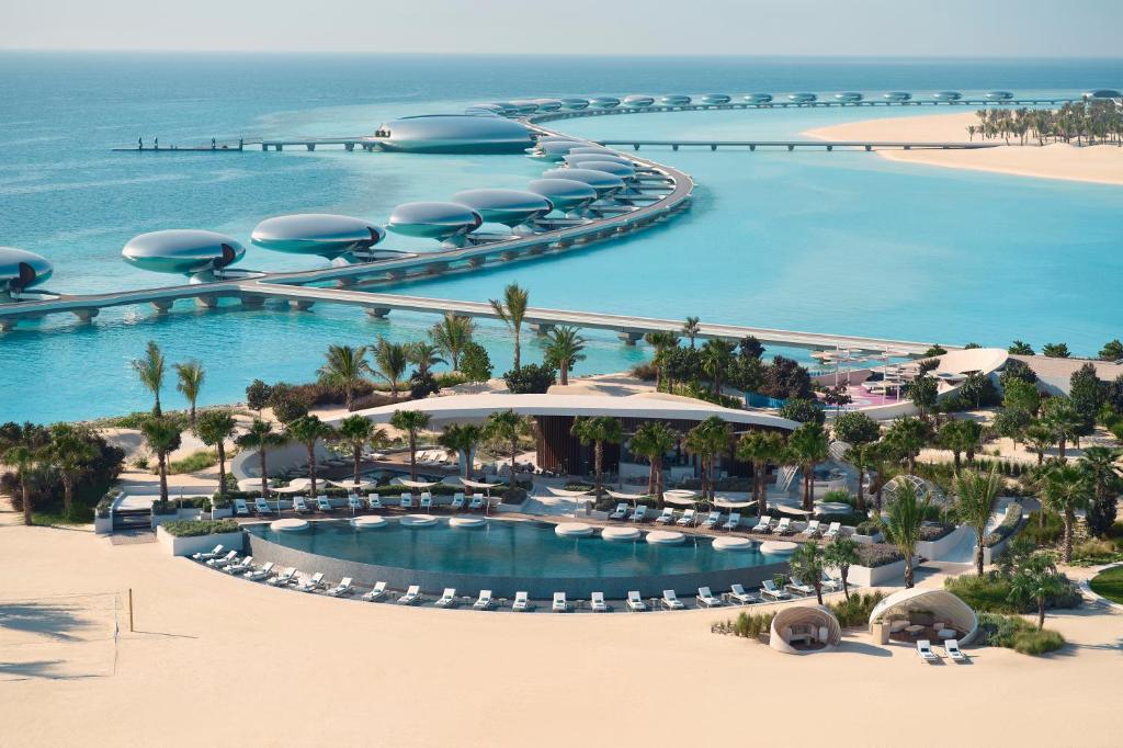 Imagine um destino que parece ter saído de um filme futurista e ao mesmo tempo te coloca em bangalôs flutuando sobre águas cristalinas do Mar Vermelho, isso é o que o Shebara Resort oferece na exclusiva ilha de Sheybarah, parte do ambicioso projeto turístico The Red Sea. O grande destaque aqui são as vilas sobre a água (Overwater Villas) com design icônico em forma de orbe espelhado, projetadas para refletir o mar e o céu ao redor e criar uma sensação de conexão total com a natureza. São acomodações elevadas sobre o mar, cada uma com vista panorâmica, ambiente elegante e foco em conforto e privacidade, uma experiência perfeita para quem busca um refúgio romântico ou uma estadia de luxo isolada. Além das overwater villas, o resort conta com outras vilas à beira-mar, restaurantes de alto nível, spa de bem-estar e atividades aquáticas. A acessibilidade ao Shebara Resort se dá por barco ou hidroavião a partir do aeroporto internacional local.